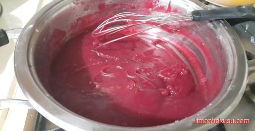 Muhallebi kıvamına gelen sosu ocaktan alıp soğuması için sürekli karıştırıyoruz.